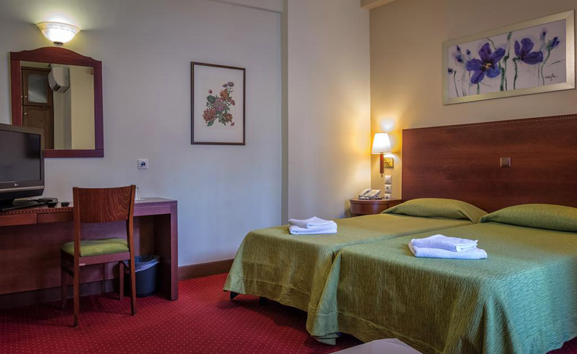 Τα δίκλινα και τρίκλινα δωμάτια προσφέρουν όλες τις σύγχρονες ανέσεις εξασφαλίζοντας στον επισκέπτη μια άνετη διαμονή.